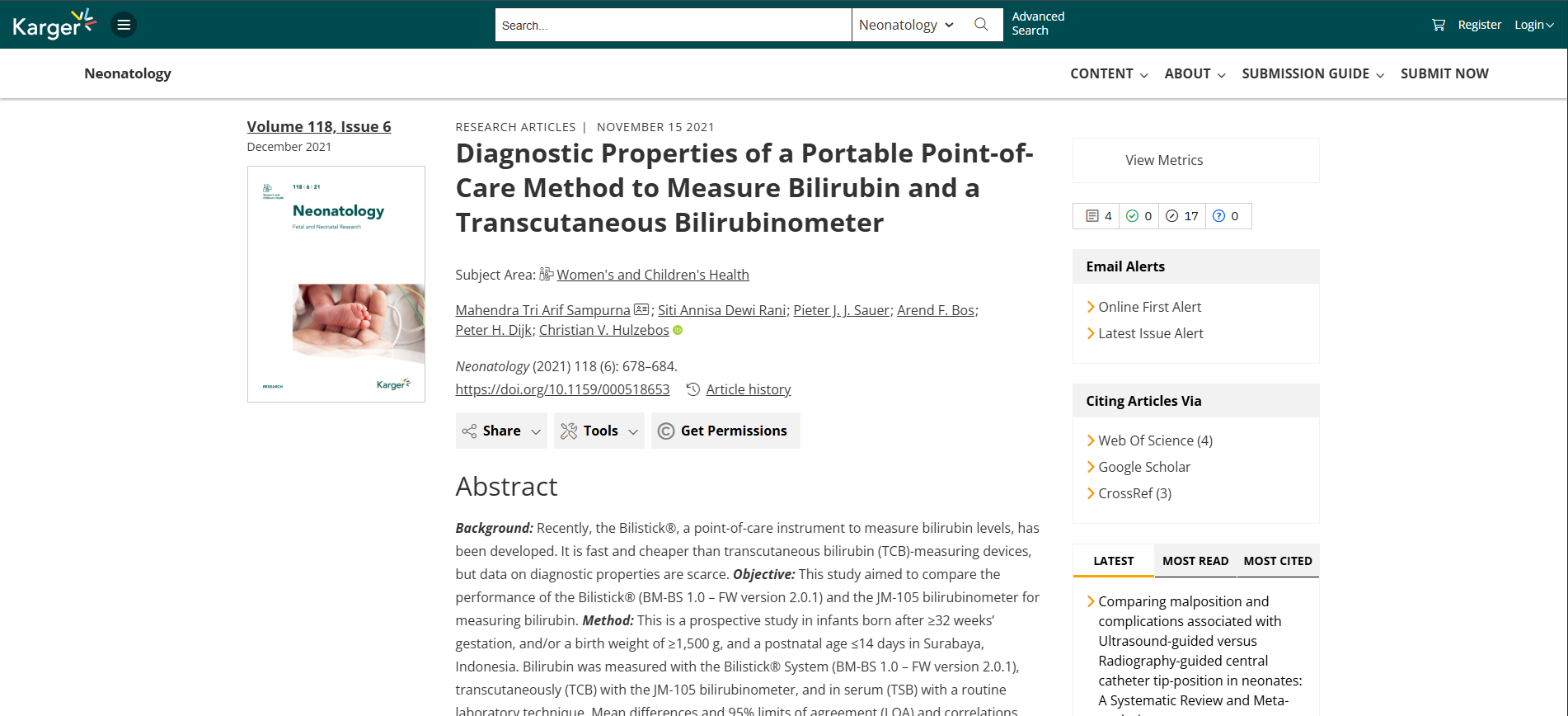 Hiperbilirubinemia berat lebih sering terjadi di negara berpenghasilan rendah dan menengah seperti Indonesia dibandingkan di negara berpenghasilan tinggi. Salah satu faktor penyebabnya kemungkinan adalah kurangnya kepatuhan terhadap pedoman diagnosis dan pengobatan hiperbilirubinemia yang ada. Kami telah mengembangkan pedoman nasional baru untuk penanganan hiperbilirubinemia di Indonesia. Untuk membantu tenaga kesehatan dalam menggunakan pedoman ini, aplikasi alat bantu keputusan berbasis web dapat meningkatkan kepatuhan terhadap pedoman dan perawatan bayi dengan hiperbilirubinemia.